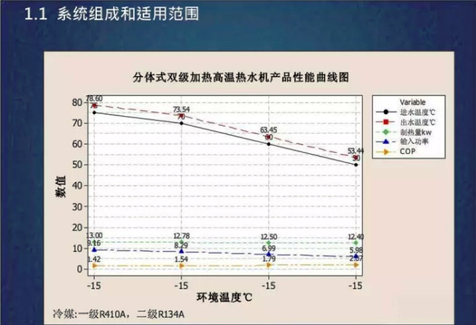 -機組應能夠在不低于-15℃的環(huán)境里進行供熱、設計工況的供熱性能系數(shù)COP不低于2.0.是確定空氣源熱泵熱水機組可作為北京地區(qū)供暖熱泵的一個重要參數(shù)。