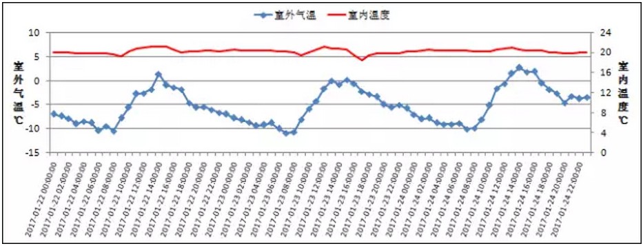 在北京整個采暖季,即便最低室外氣溫達(dá)-12℃,室內(nèi)溫度維持18~21℃;
