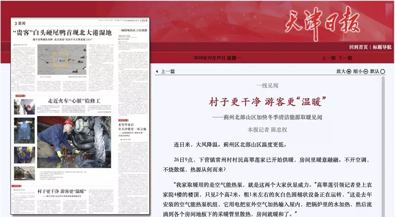 天津日報和山東公共頻道:供暖用上空氣源熱泵,節能又環保!