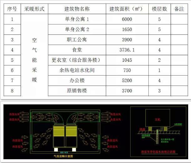 為使廠區供暖區在車間不進行生產的情況下(無法使用余熱發電系統),能夠正常供暖,因此增加空氣源熱泵設備,作為整體采暖系統的補充能源。為此,廠區經過多次協商和綜合考慮,最終選擇了中廣歐特斯空氣源熱泵進行替代改造,實現冷暖兩用目標。該項目工程覆蓋了更衣室、單身公寓、食堂、余熱電站水化間、職工公寓、辦公樓、廠區銷售樓等相對集中部位,建筑面積約25000㎡。