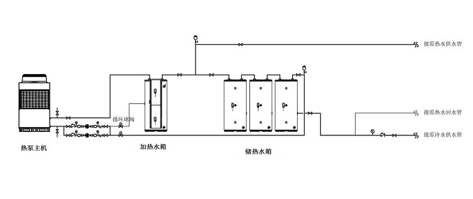 更為重要的是,在系統(tǒng)層面有著更為突出的節(jié)能效果:整個系統(tǒng)采用模塊化承壓水箱,憑借閉式系統(tǒng)熱水利用率高,隨用隨補等特點,系統(tǒng)熱水儲量僅為傳統(tǒng)熱泵系統(tǒng)的1/3左右,原廠生產(chǎn)的水箱保溫性能也遠(yuǎn)優(yōu)于普通開式水箱,因而系統(tǒng)散熱損失大大降低;承壓水箱在供水時也無需對熱水進行增壓,系統(tǒng)中水泵的電耗也大大減少。系統(tǒng)綜合能耗較傳統(tǒng)熱泵系統(tǒng)可以降低30%,每年可以節(jié)省一筆可觀的運行費用。