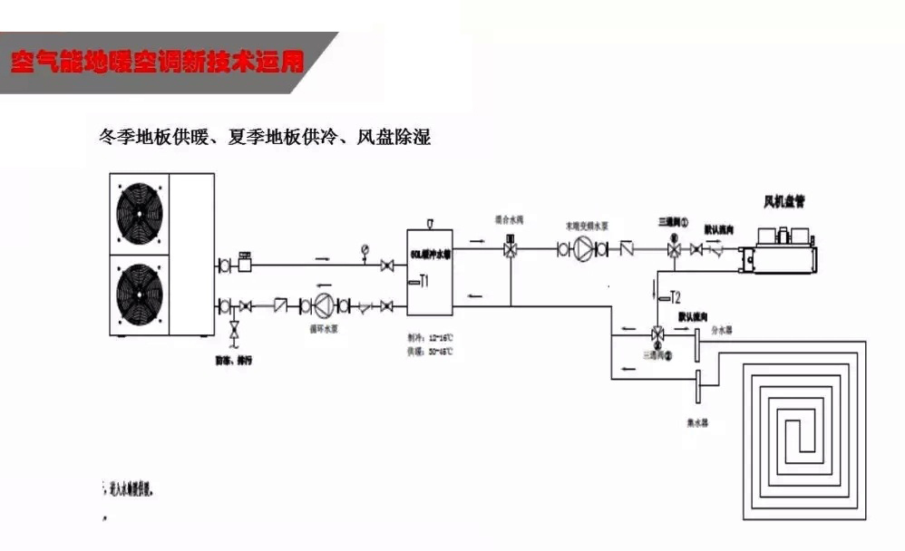 空氣能地暖空調新技術廣泛運用于冬季地板供暖、夏季地板供冷、風盤除濕。它主要解決的問題有以下幾個: