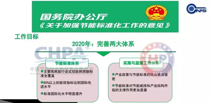 首先,向大家簡要介紹一下我國標準標識的概況。我國高度重視節(jié)能標準化工作,除《節(jié)能法》之外,很多政策文件都提到要加快制定能效和能耗限額標準。在2015年國務(wù)院辦公廳頒布的《關(guān)于加強節(jié)能標準化工作的意見》中提到,到2020年國家要完善兩大標準體系建設(shè):一是“節(jié)能標準體系”,提出主要高能耗行業(yè)實現(xiàn)能效限額標準全覆蓋,80%以上的能效指標都要達到國際先進水平,標準國際化水平要明顯提升;二是“實施與監(jiān)督工作體系”,要求產(chǎn)業(yè)政策與節(jié)能標準結(jié)合更加緊密,節(jié)能標準對節(jié)能減排和產(chǎn)業(yè)結(jié)構(gòu)升級起到顯著的支撐作用。