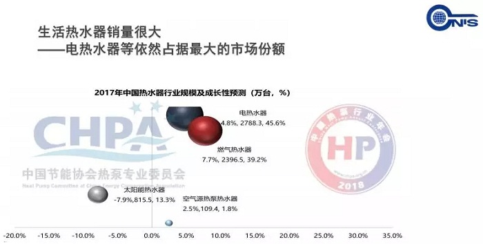 下面介紹一下國內(nèi)外相關(guān)標準,據(jù)統(tǒng)計,我國建筑能耗約占全社會能耗總量的25%,建筑生活熱水和供暖占建筑能耗總量的約60%,所以說,熱水和供暖設(shè)備的節(jié)能潛力非常巨大。據(jù)產(chǎn)業(yè)在線統(tǒng)計報告顯示,我國生活熱水器銷量非常大。2017年電熱水器銷售2788.3萬臺,占熱水器銷量的45.6%,燃氣熱水器有27.7%的增長,空氣源熱泵熱水器有2.5%的增長,銷售109.4萬臺,占比1.8%。