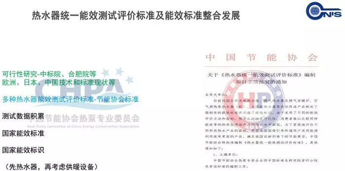 最后,為大家介紹一下統(tǒng)一熱水器測試方法的研究進展。為了落實國務(wù)院有關(guān)強制性標準整合的有關(guān)精神,2016年4月,由中國節(jié)能協(xié)會與中國標準化研究院聯(lián)合啟動熱水設(shè)備能效檢測方法與能效標準整合可行性研究第一次研討會,會議一致認為多種熱水器能效標識統(tǒng)一評價具有重要意義。由于統(tǒng)一評價的難度,由節(jié)能協(xié)會立項制定熱水器統(tǒng)一測試方法團體標準。