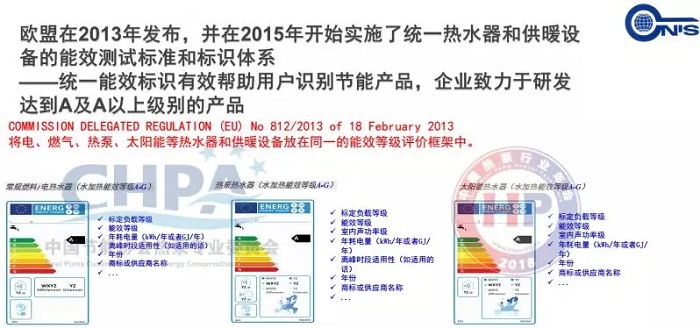 歐盟在2013年發(fā)布,2015年開始實施了統(tǒng)一熱水器和供暖設(shè)備的能效標準和標識體系,將電、燃氣、熱泵、太陽能等熱水器和供暖設(shè)備放在了同一能效等級評價框架中,能夠有效幫助用戶識別節(jié)能產(chǎn)品,促進企業(yè)致力于研發(fā)達到A級和A以上級別產(chǎn)品。