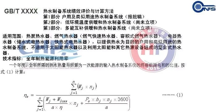 經(jīng)過了多次征求意見,目前團體標準已經(jīng)形成了送審稿,標準的名稱是T/CECA XXXX-XXXX《家用和類似用途熱水器能效測試計算方法》,適用范圍包括熱泵熱水器、燃氣熱水器(燃氣快速熱水器、容積式燃氣熱水器)、電器熱水器(儲水式電熱水器、快熱式電熱水器),以提供熱水為目的的戶用和類似用途的熱水制備系統(tǒng)。由于太陽能熱水器測試方法的復(fù)雜性,暫時不適用于太陽能熱水器以及利用太陽能和其它熱源設(shè)備組成的復(fù)合式熱水器。