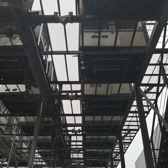 由上可知,機房的設(shè)置,在氣流組織上需要同時滿足機組額定風(fēng)量和“冷島”規(guī)模。機組送風(fēng)風(fēng)速約8米,如制冷運行,送風(fēng)筒上方可達15米以上高度,如制熱運行,考慮送風(fēng)為冷風(fēng),密度大于周圍空氣,最終高度約8~10米。結(jié)合前面“冷島”高度的計算,機組距離地面最少達到4.5米才能滿足要求。因此最終選擇架高12米,既保證了空氣供給量,同時又使風(fēng)從下方吸入中部機組,解決高負壓問題。