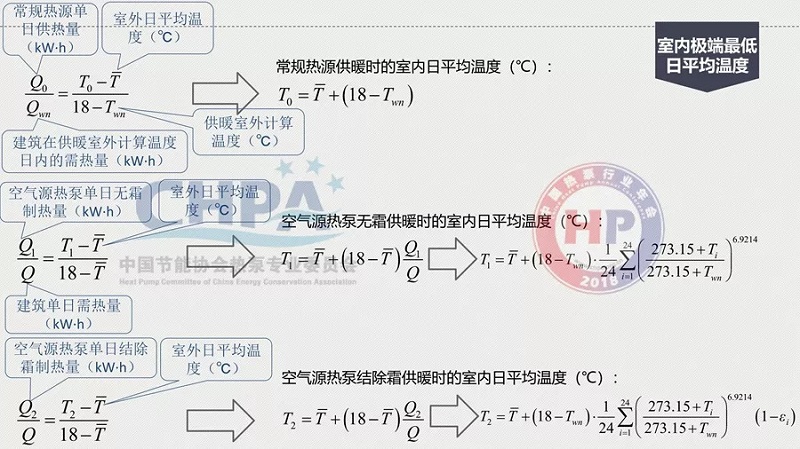 實際上,在常規熱源供熱時,室內最低日平均溫度只比室內設計溫度偏低2—4℃,而空氣源熱泵供暖時室內最低日平均溫度會偏低6—8℃,低溫結霜工況下甚至偏低9℃以上。這樣的結果,怎么處理?不保證天數在其它供暖方式中都會出現。但是如果還是這樣去做,空氣源熱泵供暖不保證天數就會增加。