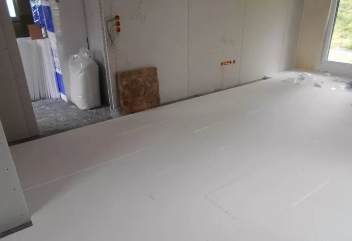 室內地面,防水隔潮膜層的上部,鋪設1層特厚的EPS材質的硬質泡沫保溫板